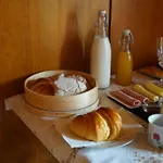 A acomodação se abre para uma vista o jardim. O quarto inclui casa de banho separada e chuveiro, secador de cabelo e lençóis de banho.